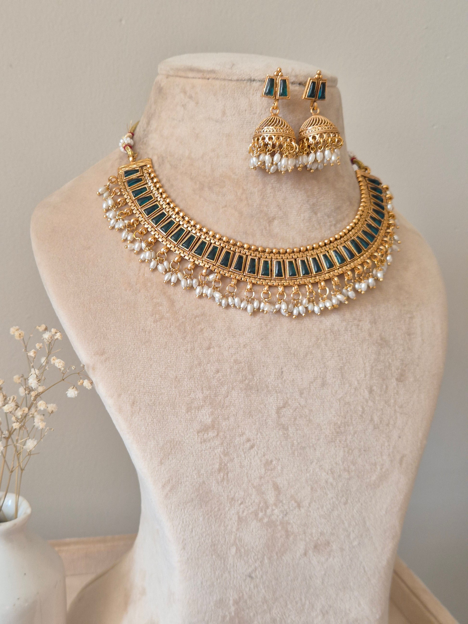 This exquisite piece of craftsmanship comes from our Golden Jewellery collection. Their polished finish and classic design make them a versatile accessory for any occasion. Bring home a piece of modern Indian aesthetic, reflecting crafts.Explore more artisanal finds from our Necklace range.