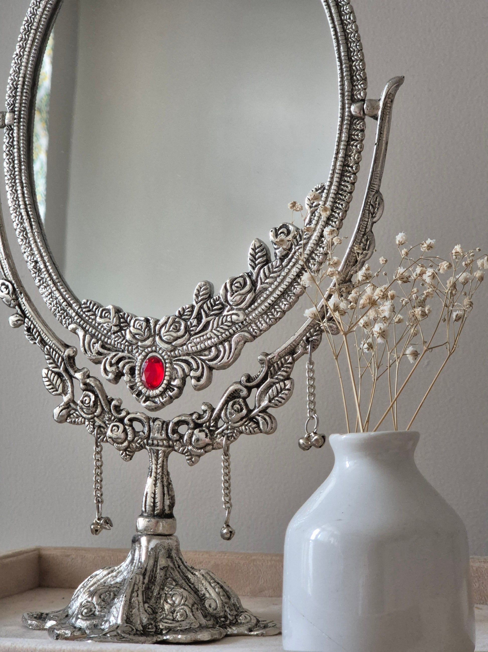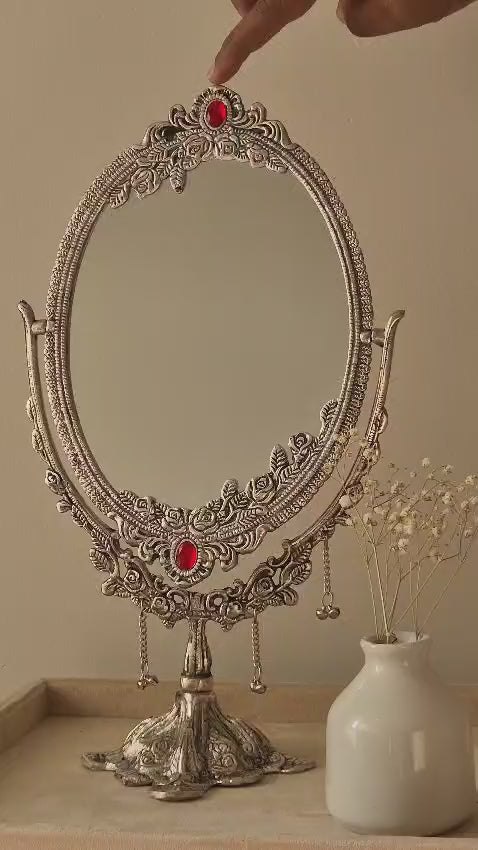 Gorgeously handcrafted mirror stand is a timeless piece of art. Adorned with charming floral carvings and intricate detailing using traditional techniques, it adds elegance and sophistication to any space. Perfect for home décor, it instantly uplifts the ambiance and makes for a thoughtful, memorable gift.