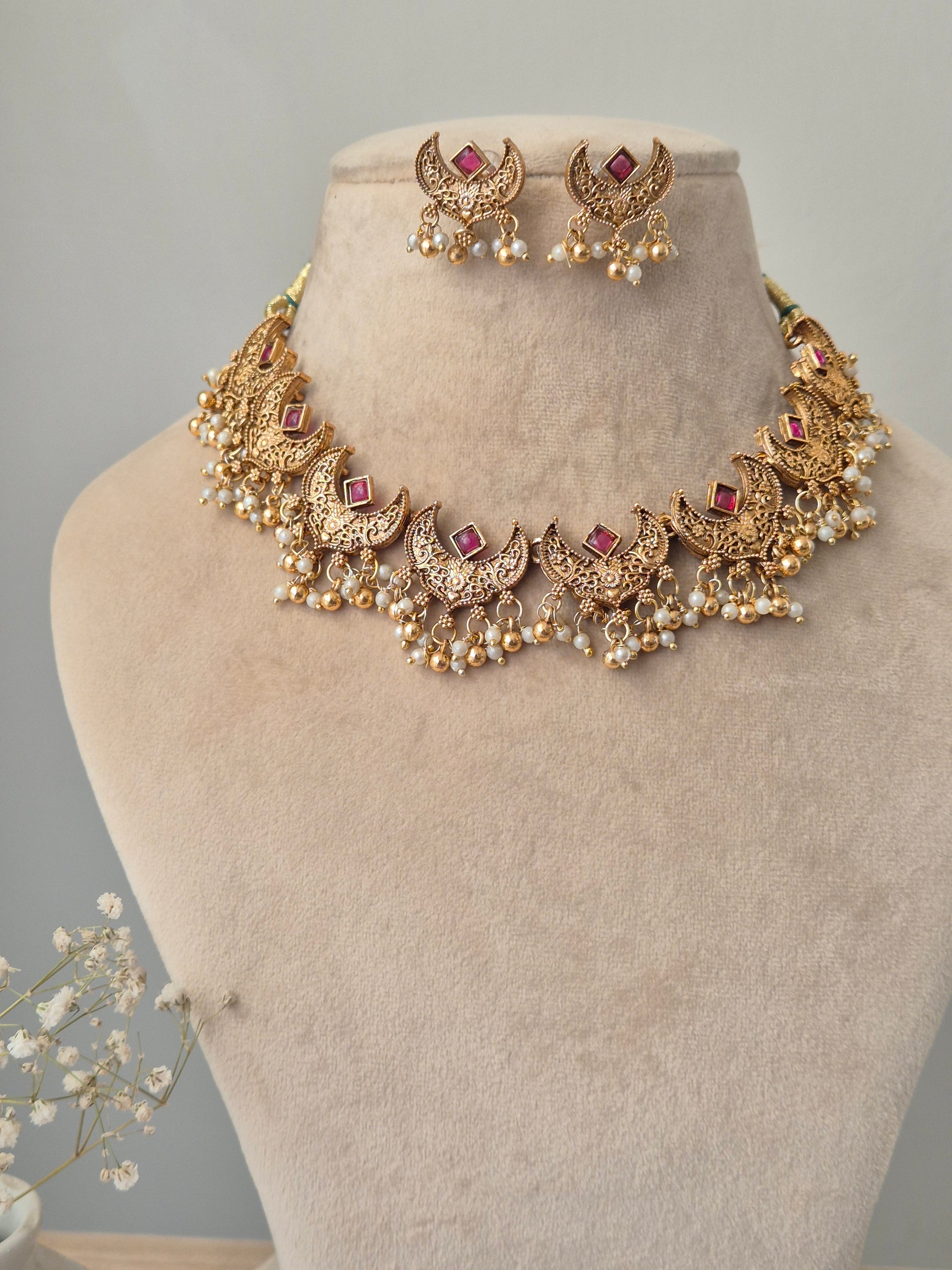 This exquisite piece of craftsmanship comes from our Golden Jewellery collection. Their polished finish and classic design make them a versatile accessory for any occasion. Bring home a piece of modern Indian aesthetic, reflecting crafts.Explore more artisanal finds from our Necklace range.