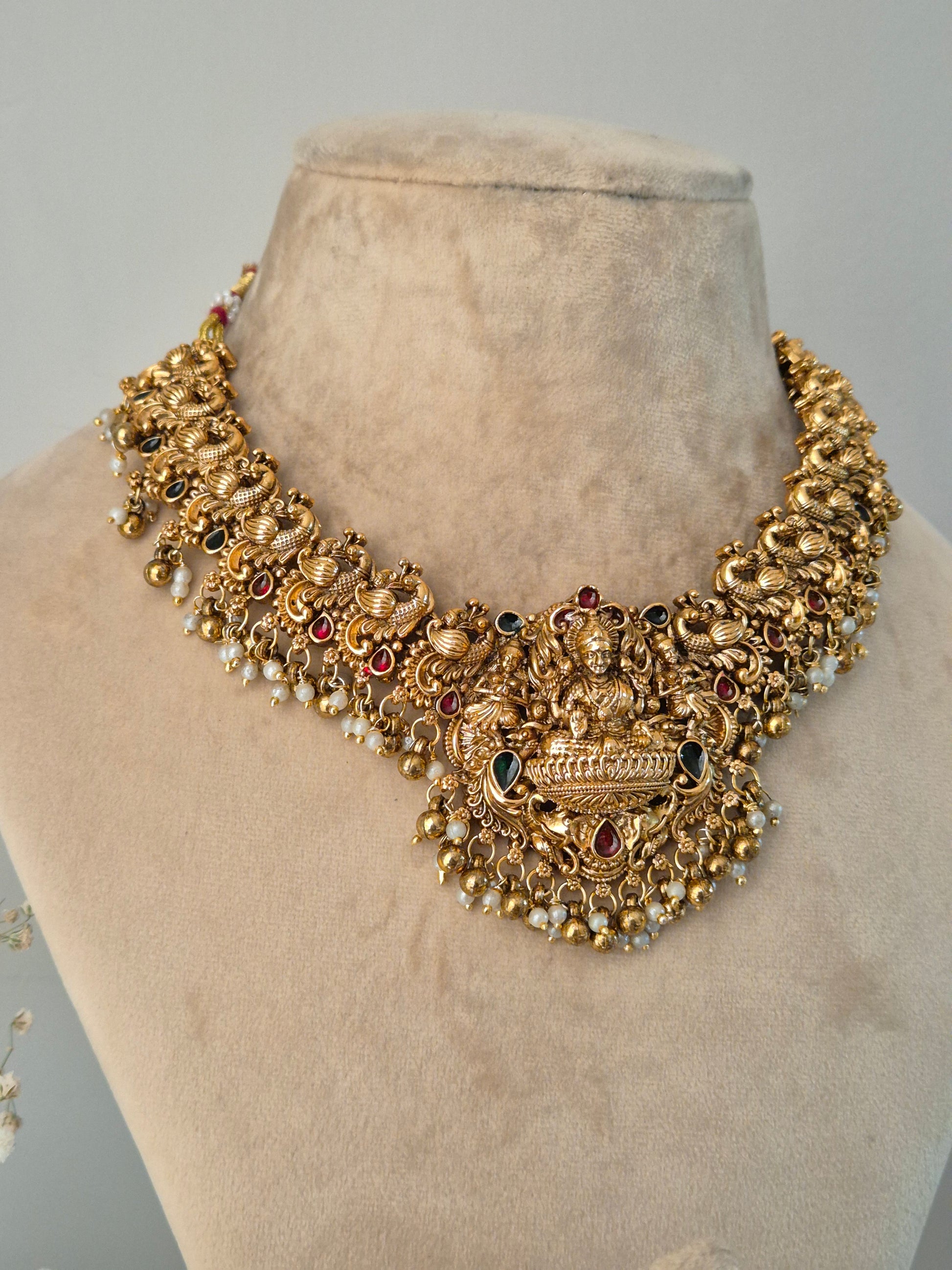 This exquisite piece of craftsmanship comes from our Golden Jewellery collection. Their polished finish and classic design make them a versatile accessory for any occasion. Bring home a piece of modern Indian aesthetic, reflecting crafts.Explore more artisanal finds from our Necklace range.