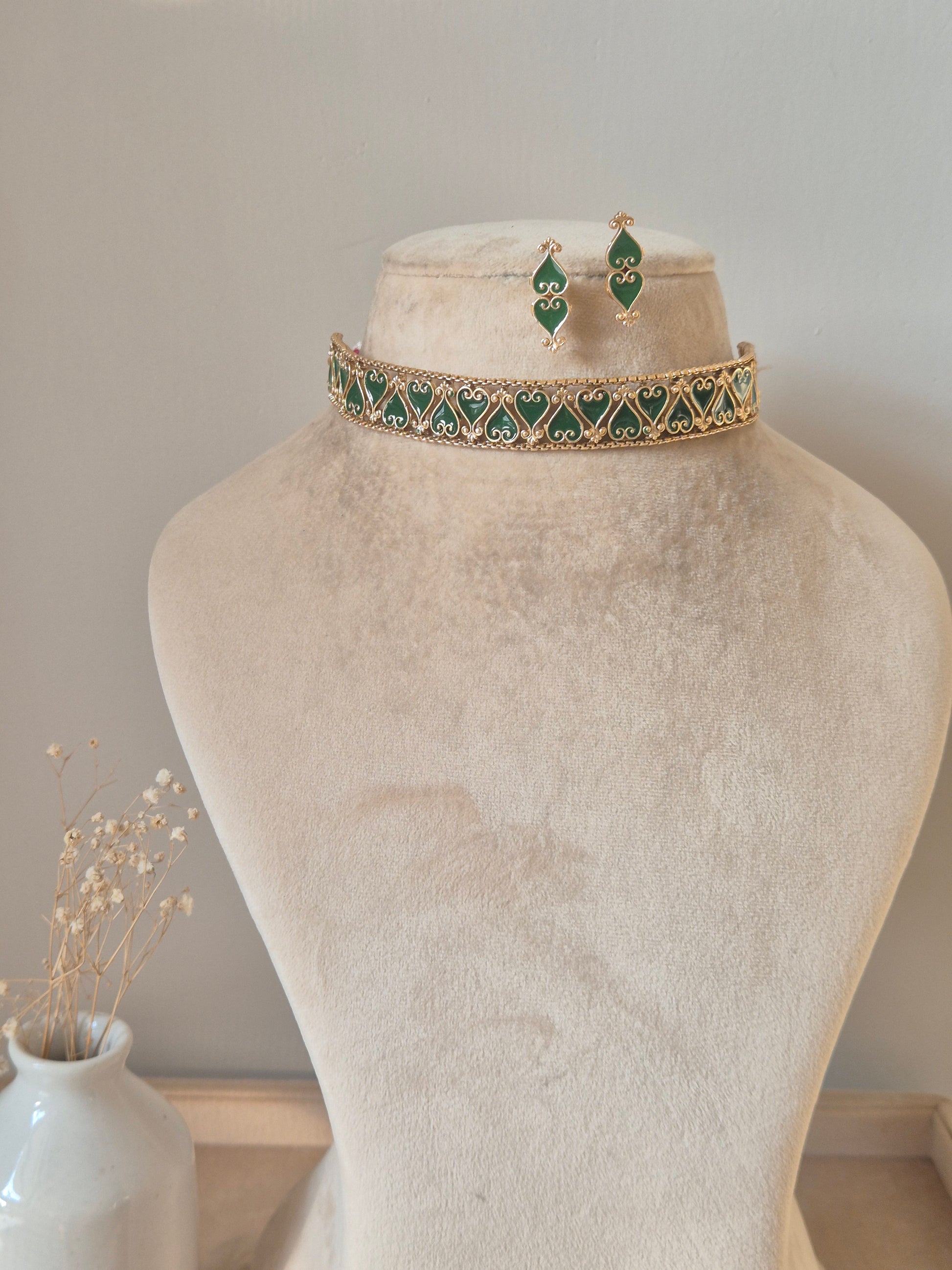 This exquisite piece of craftsmanship comes from our Golden Jewellery collection. Their polished finish and classic design make them a versatile accessory for any occasion. Bring home a piece of modern Indian aesthetic, reflecting crafts.Explore more artisanal finds from our Necklace range.