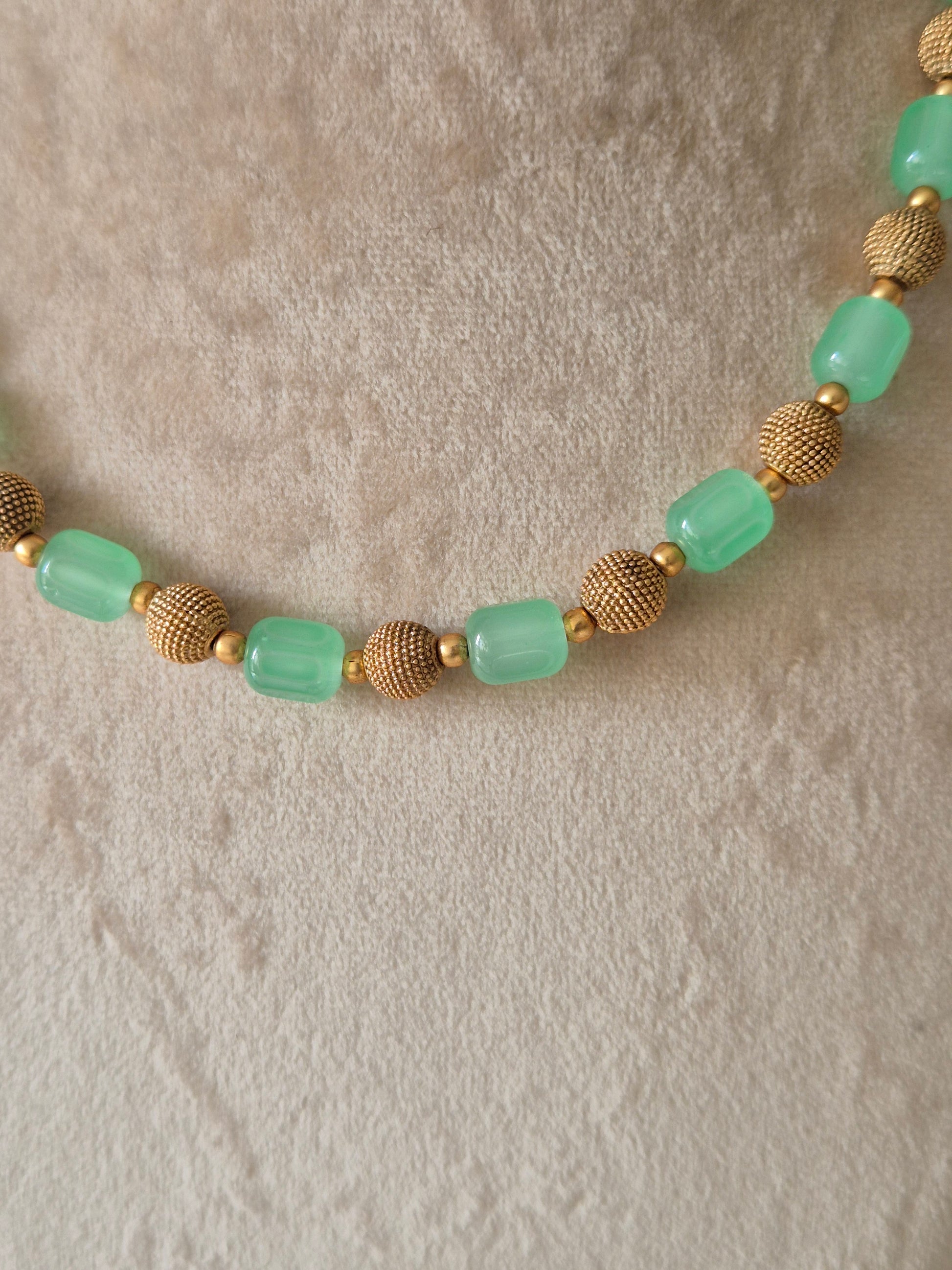 This exquisite piece of craftsmanship comes from our Golden Jewellery collection. Their polished finish and classic design make them a versatile accessory for any occasion. Bring home a piece of modern Indian aesthetic, reflecting crafts.Explore more artisanal finds from our Necklace range.