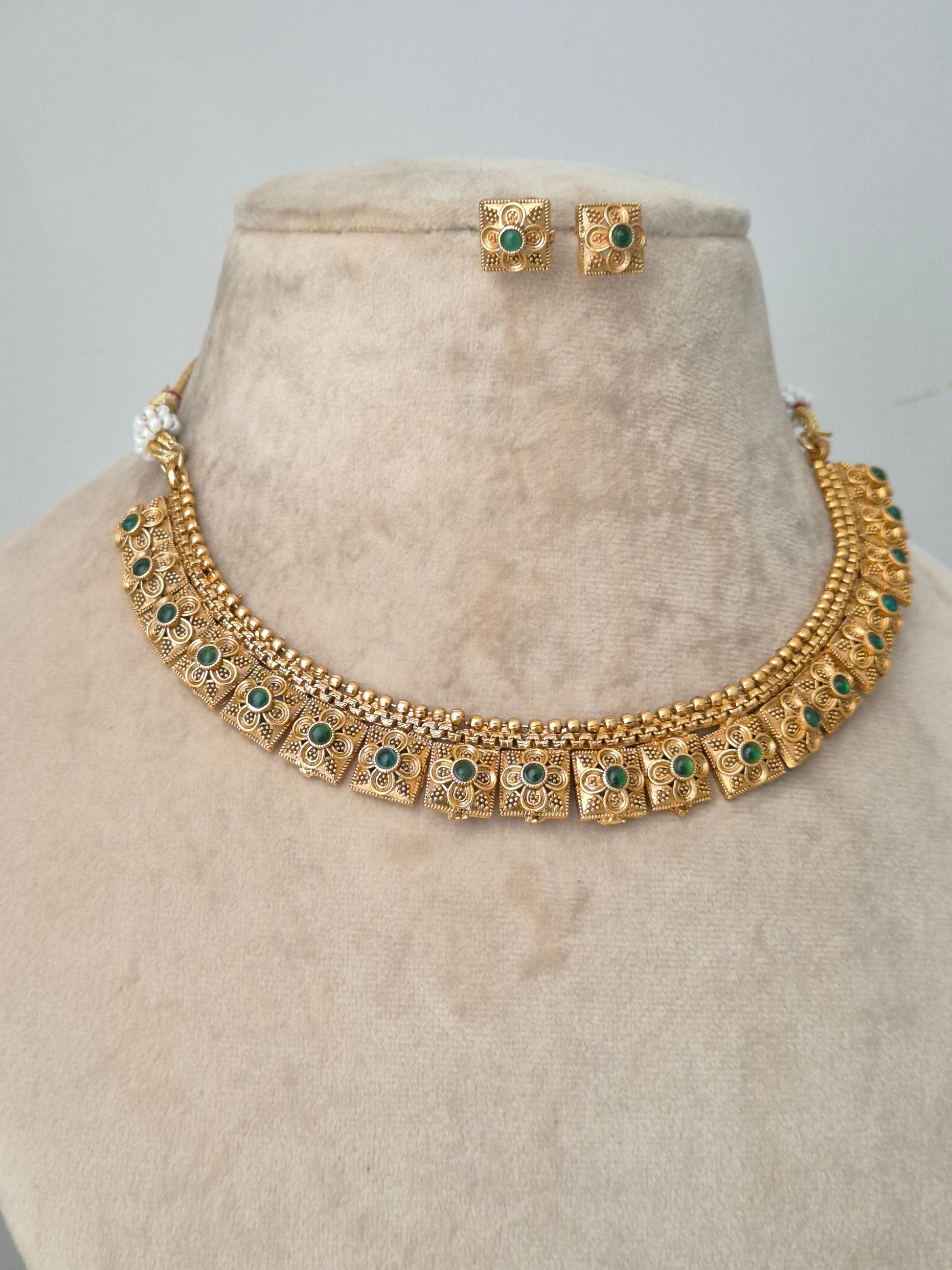 This exquisite piece of craftsmanship comes from our Golden Jewellery collection. Their polished finish and classic design make them a versatile accessory for any occasion. Bring home a piece of modern Indian aesthetic, reflecting crafts.Explore more artisanal finds from our Necklace range.