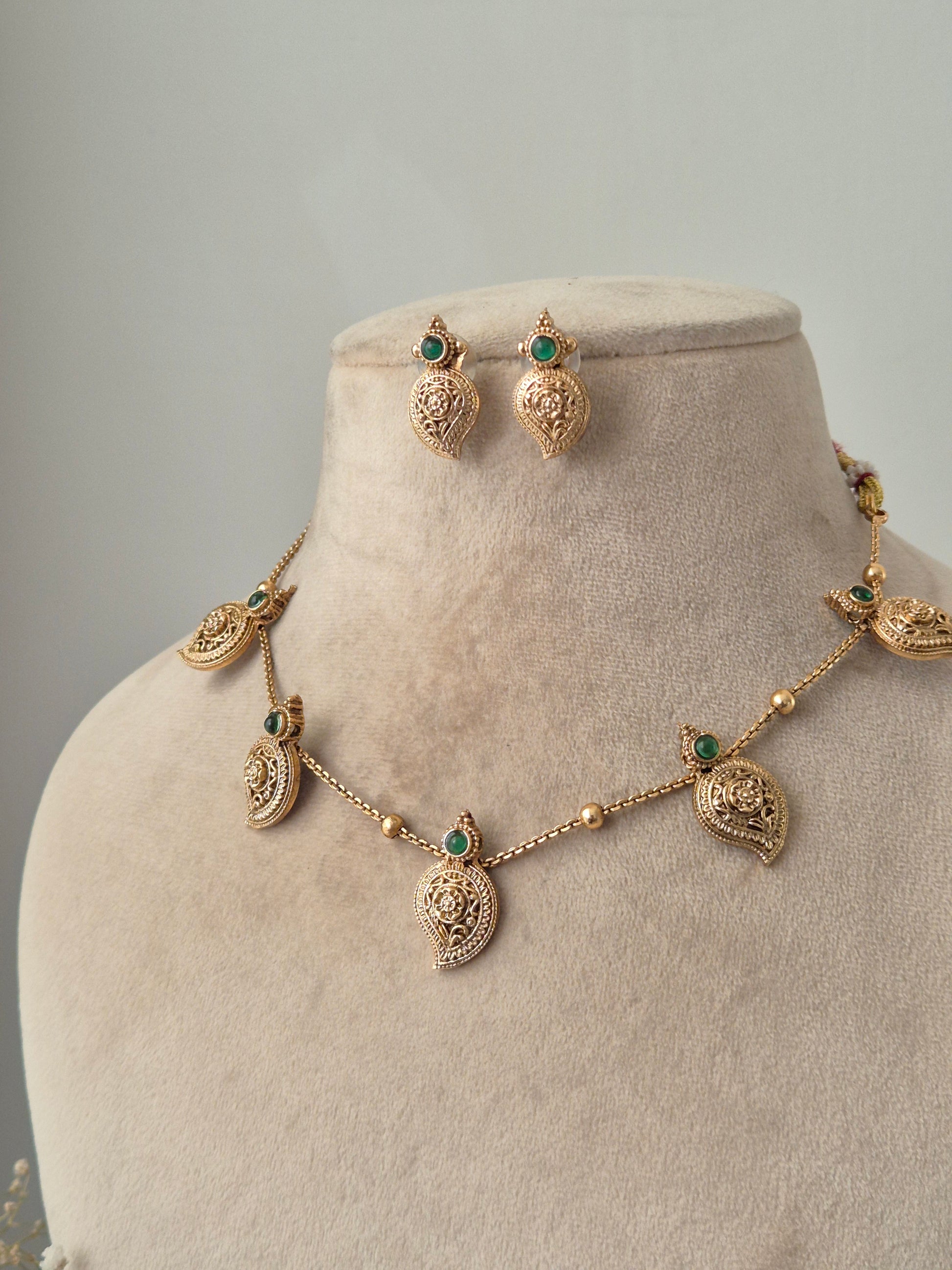 This exquisite piece of craftsmanship comes from our Golden Jewellery collection. Their polished finish and classic design make them a versatile accessory for any occasion. Bring home a piece of modern Indian aesthetic, reflecting crafts.Explore more artisanal finds from our Necklace range.